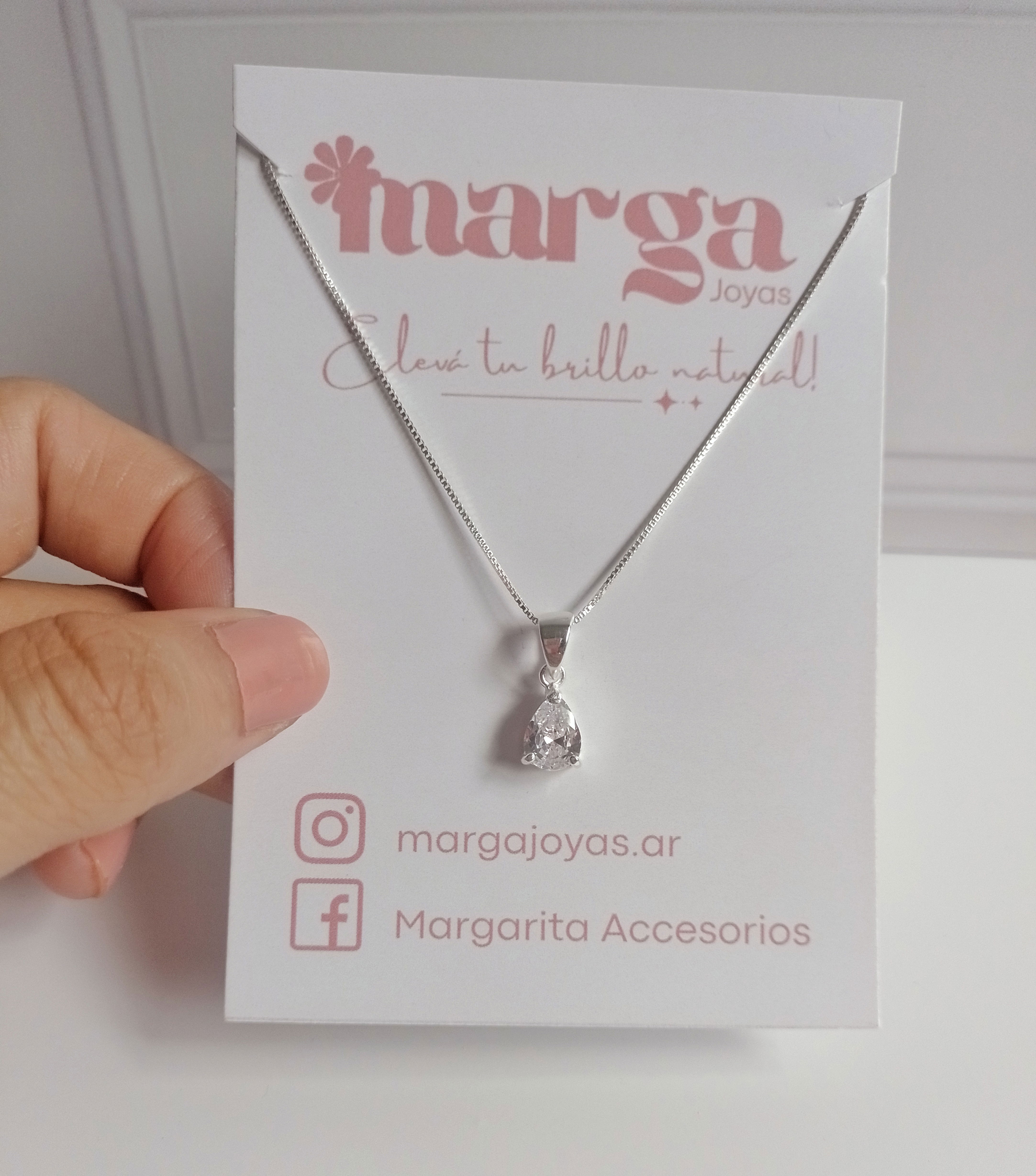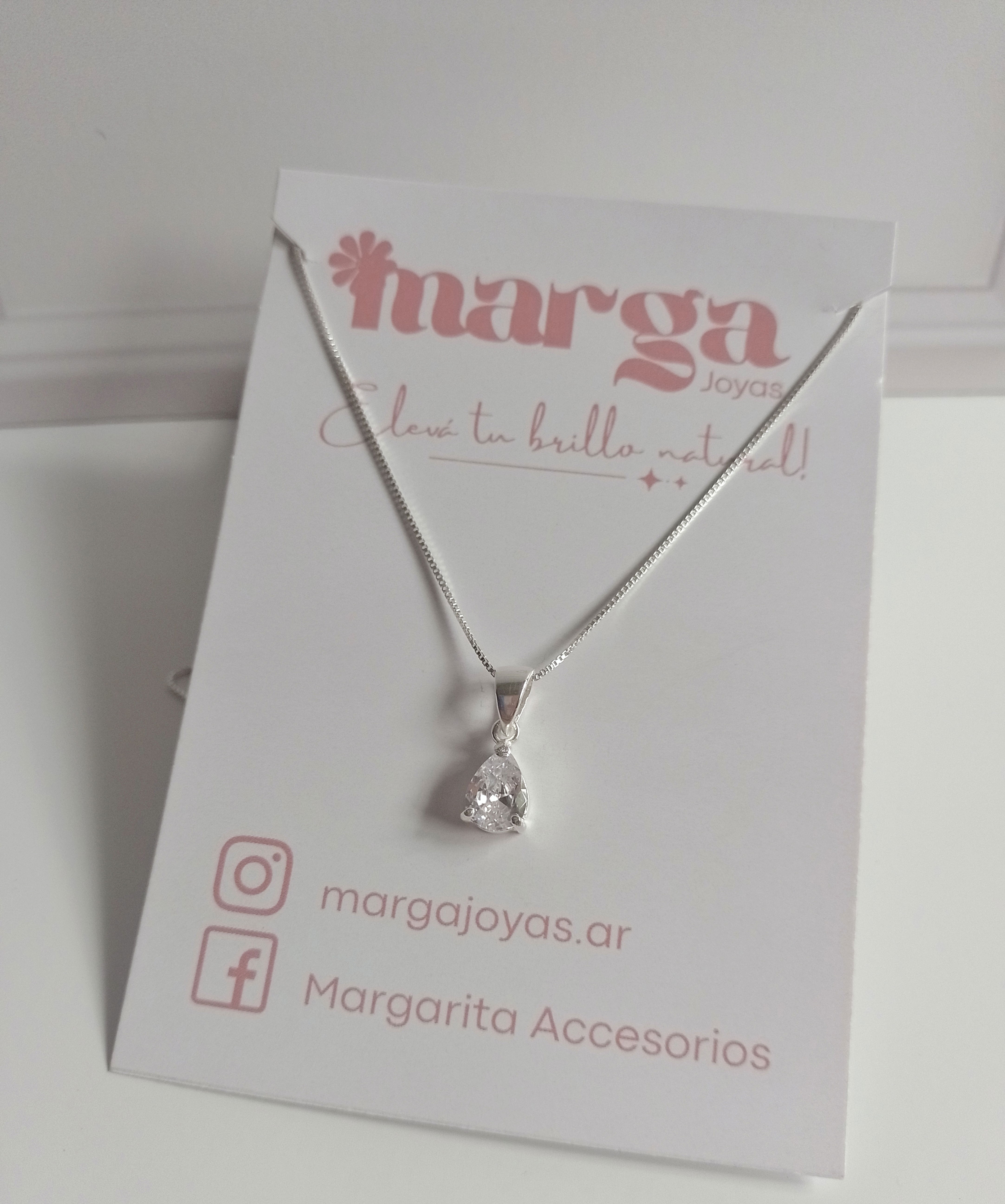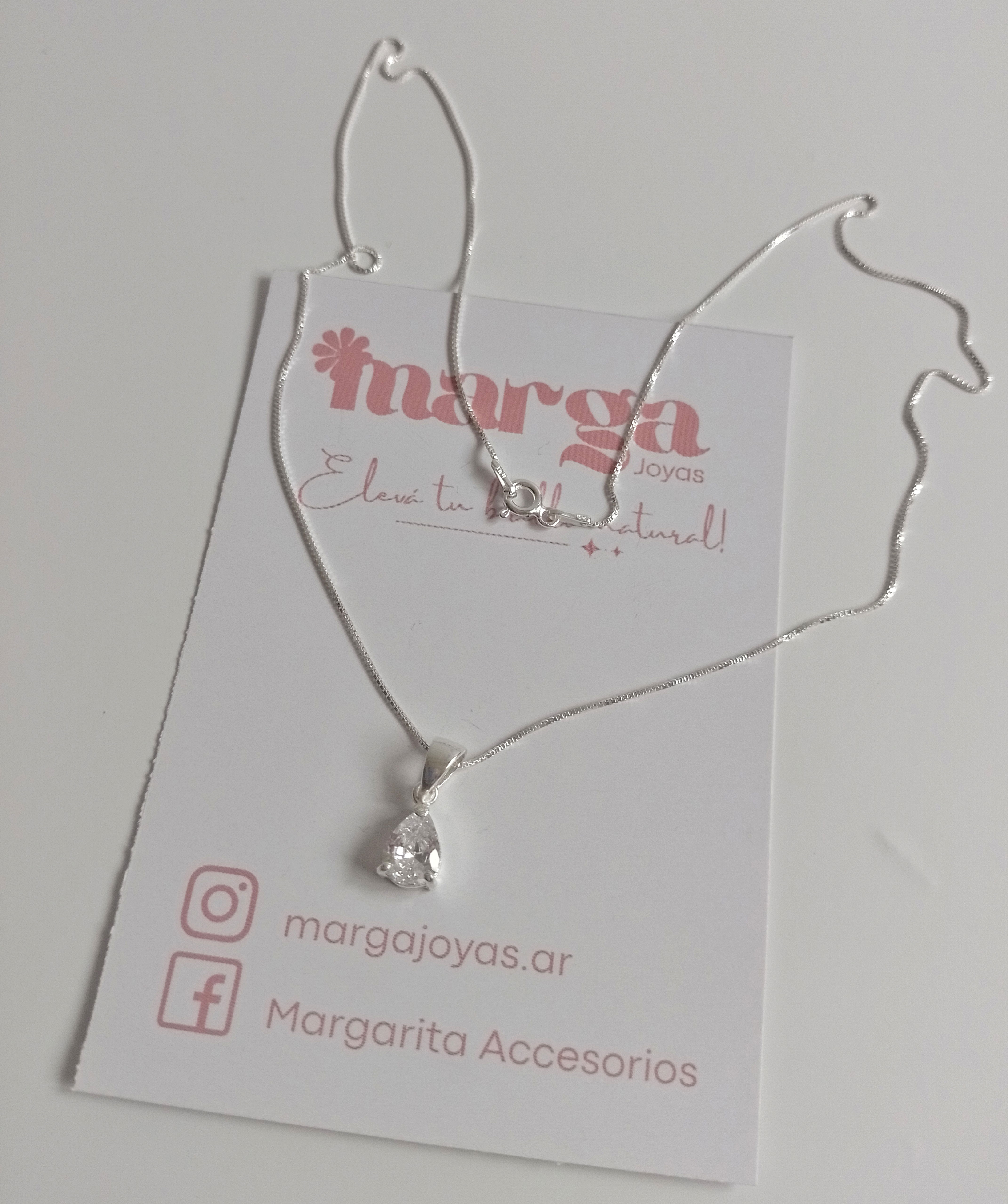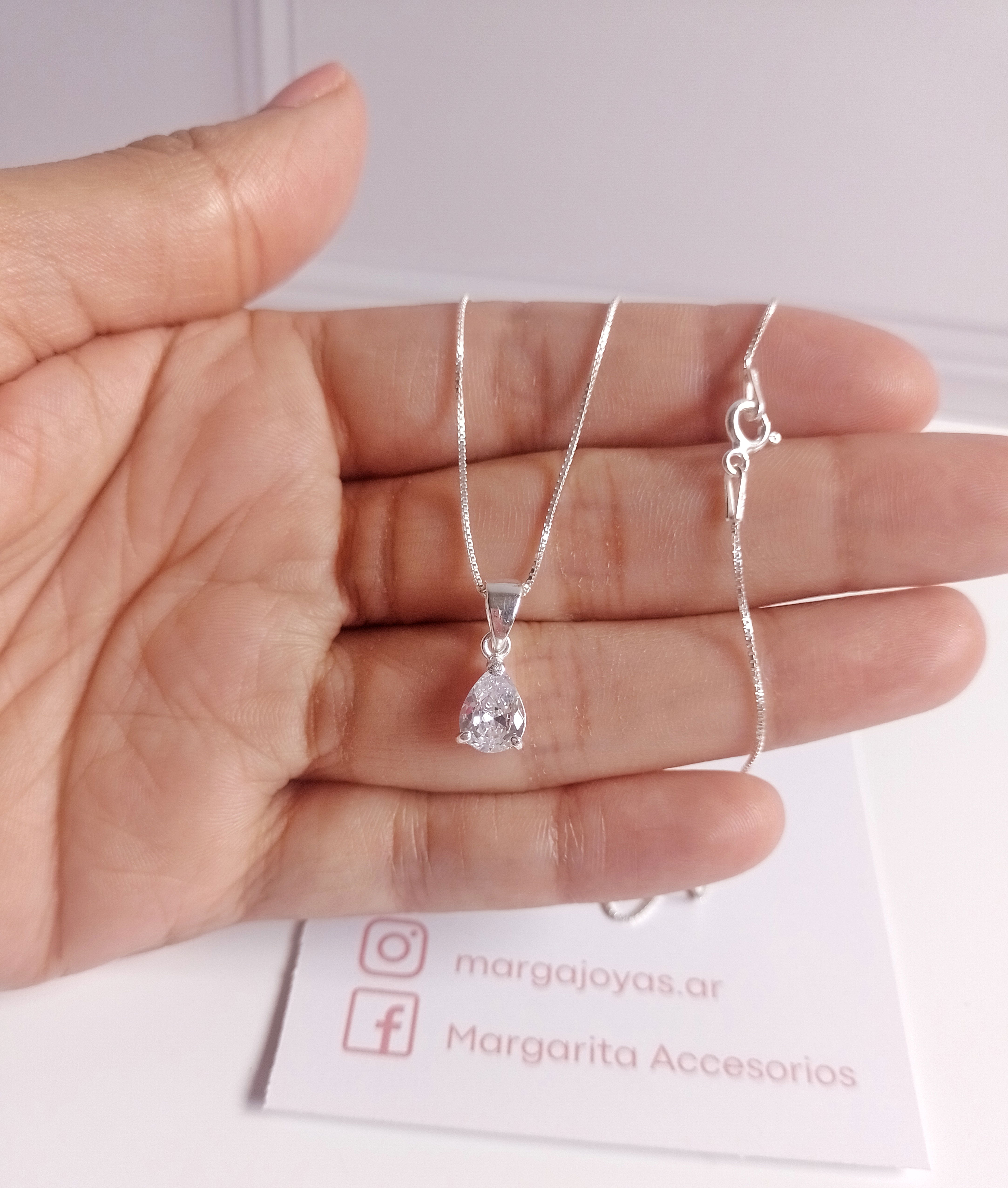 •Collar con dije de cubic cristal en forma de gota. Plata 925