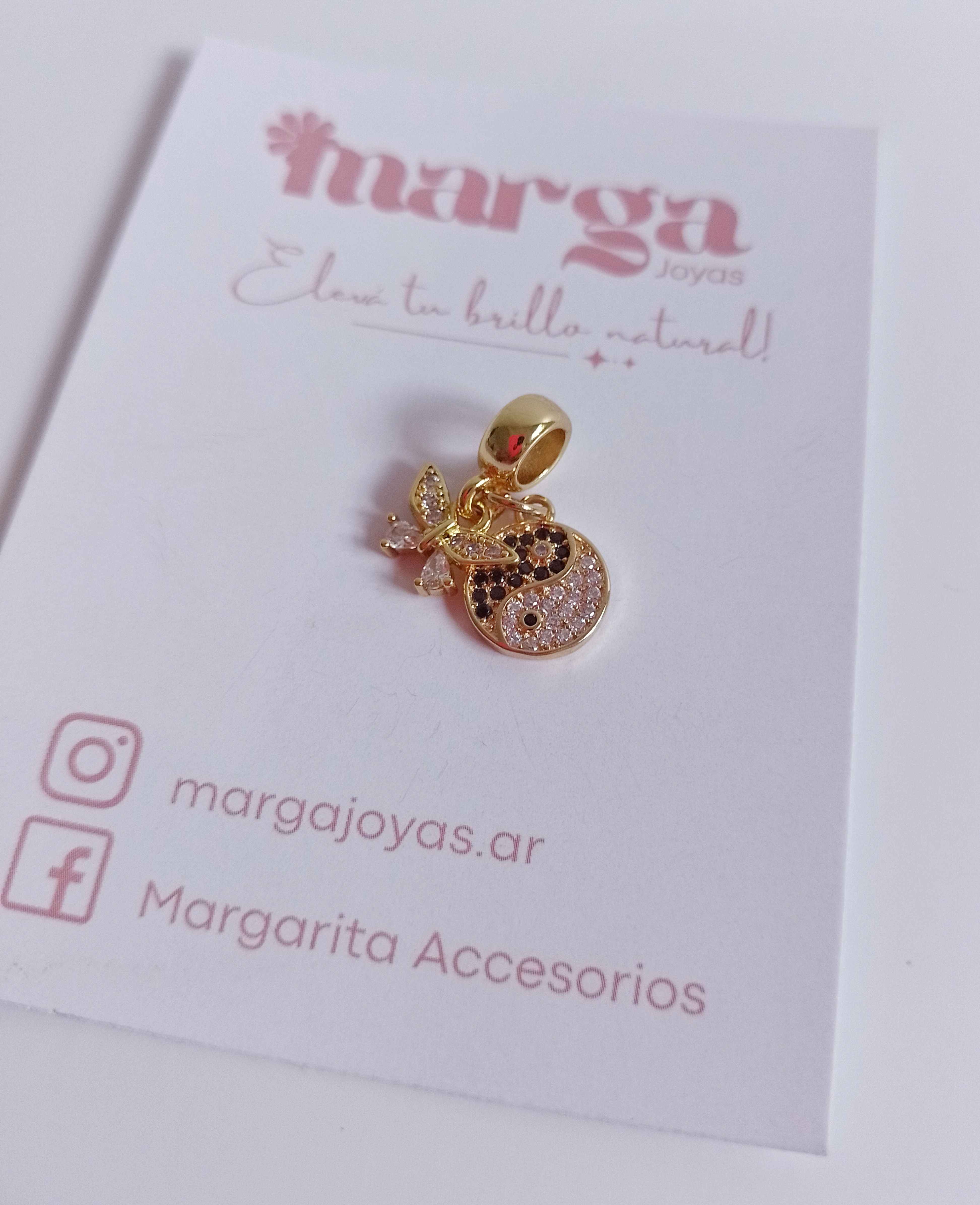 •Dije Laminado en Oro con Cubics y Micropavé en color cristal y negro