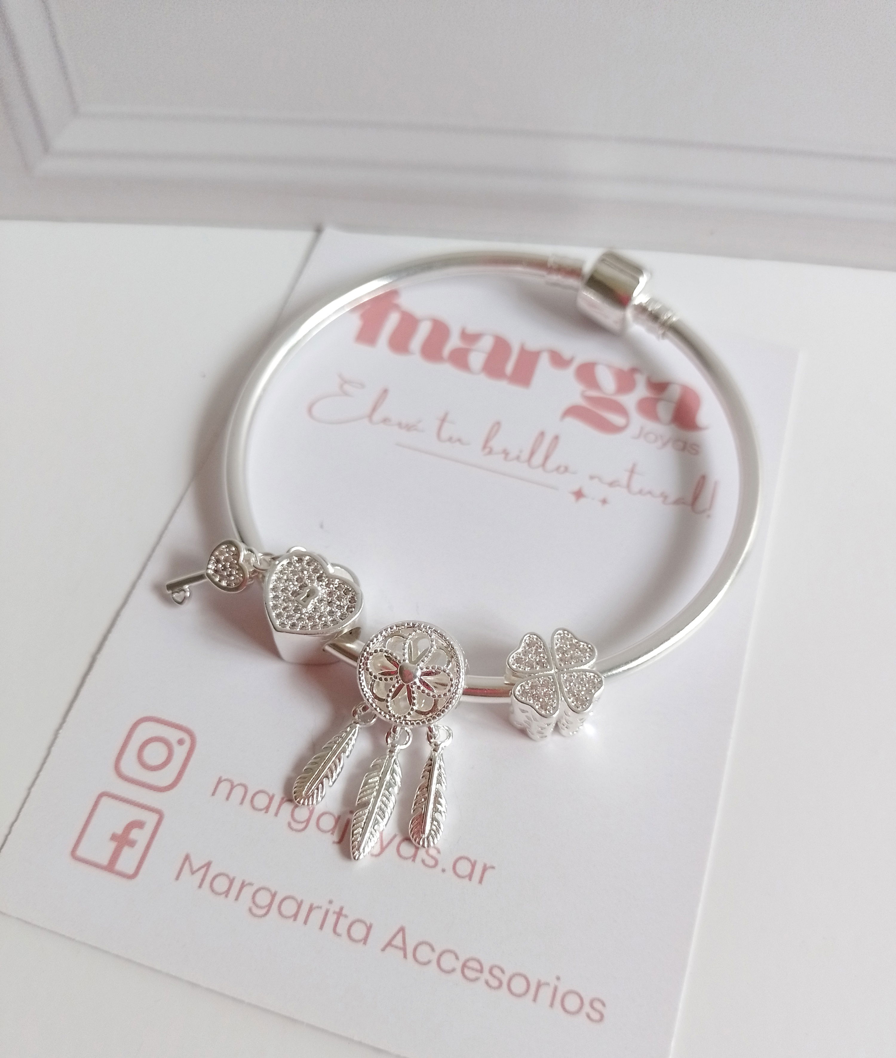 •Pulsera esclava con 3 dijes charms incluidos