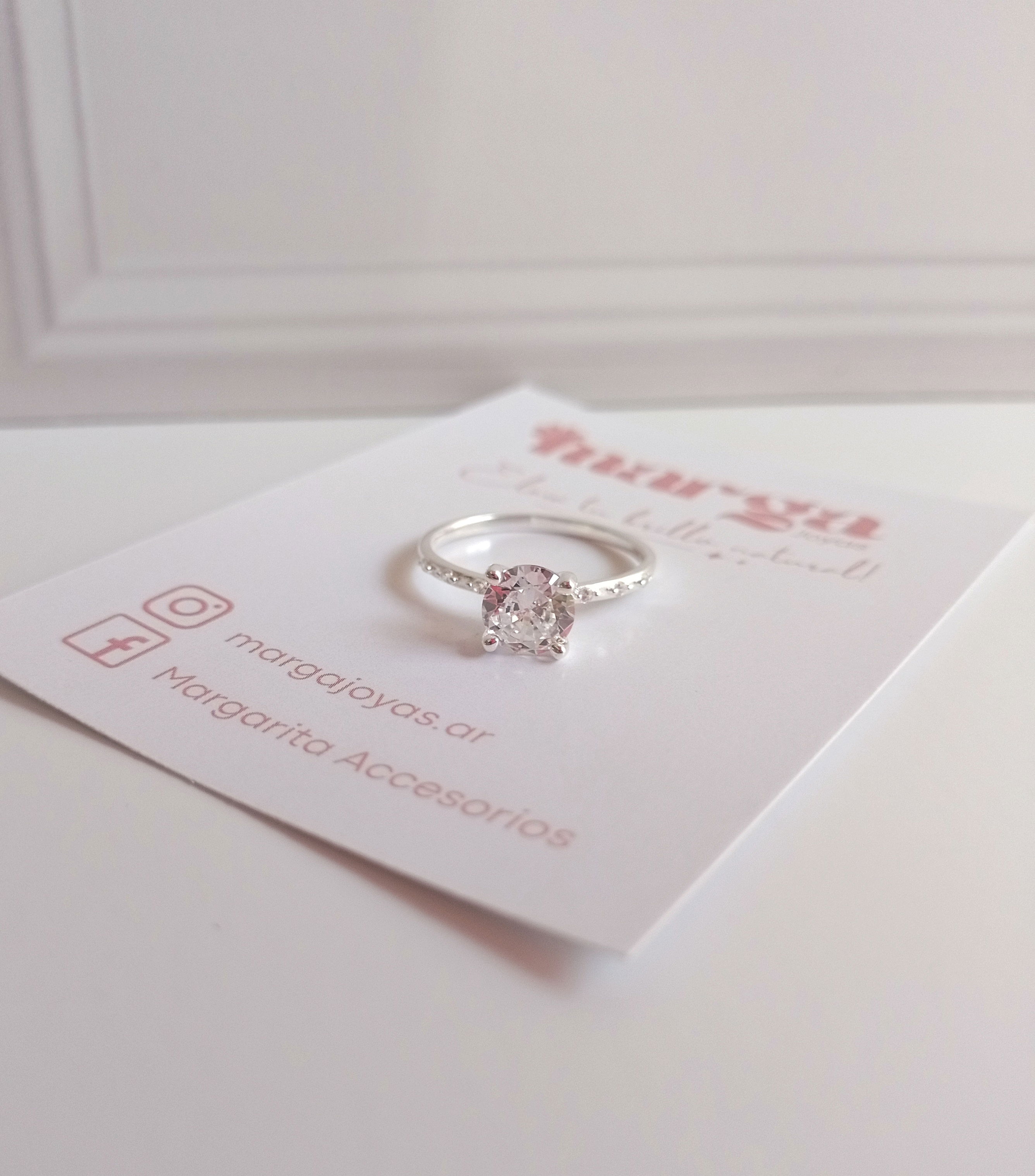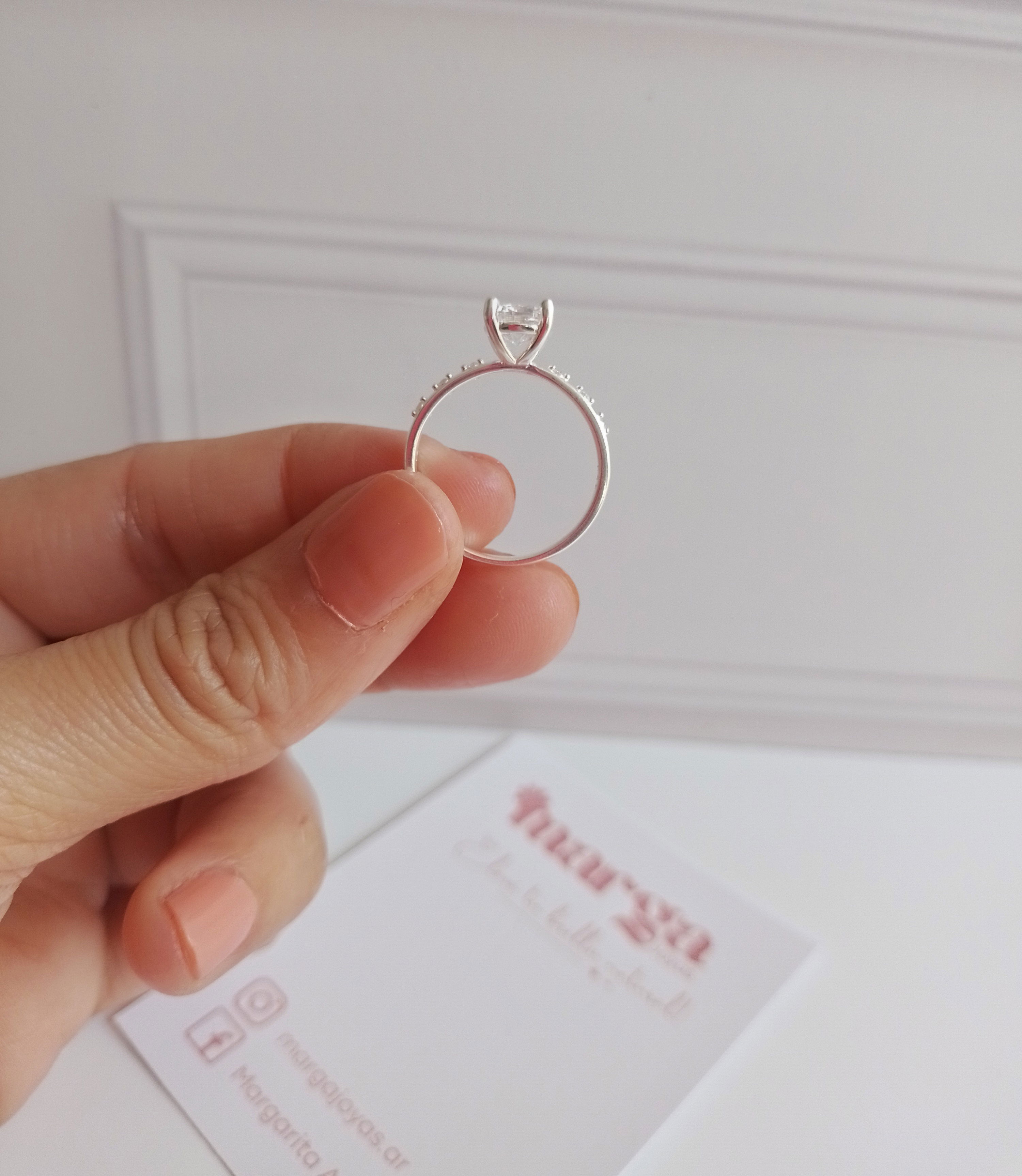 •Anillo de Plata 925 con Zirconia cristal central y microcubics en el costado