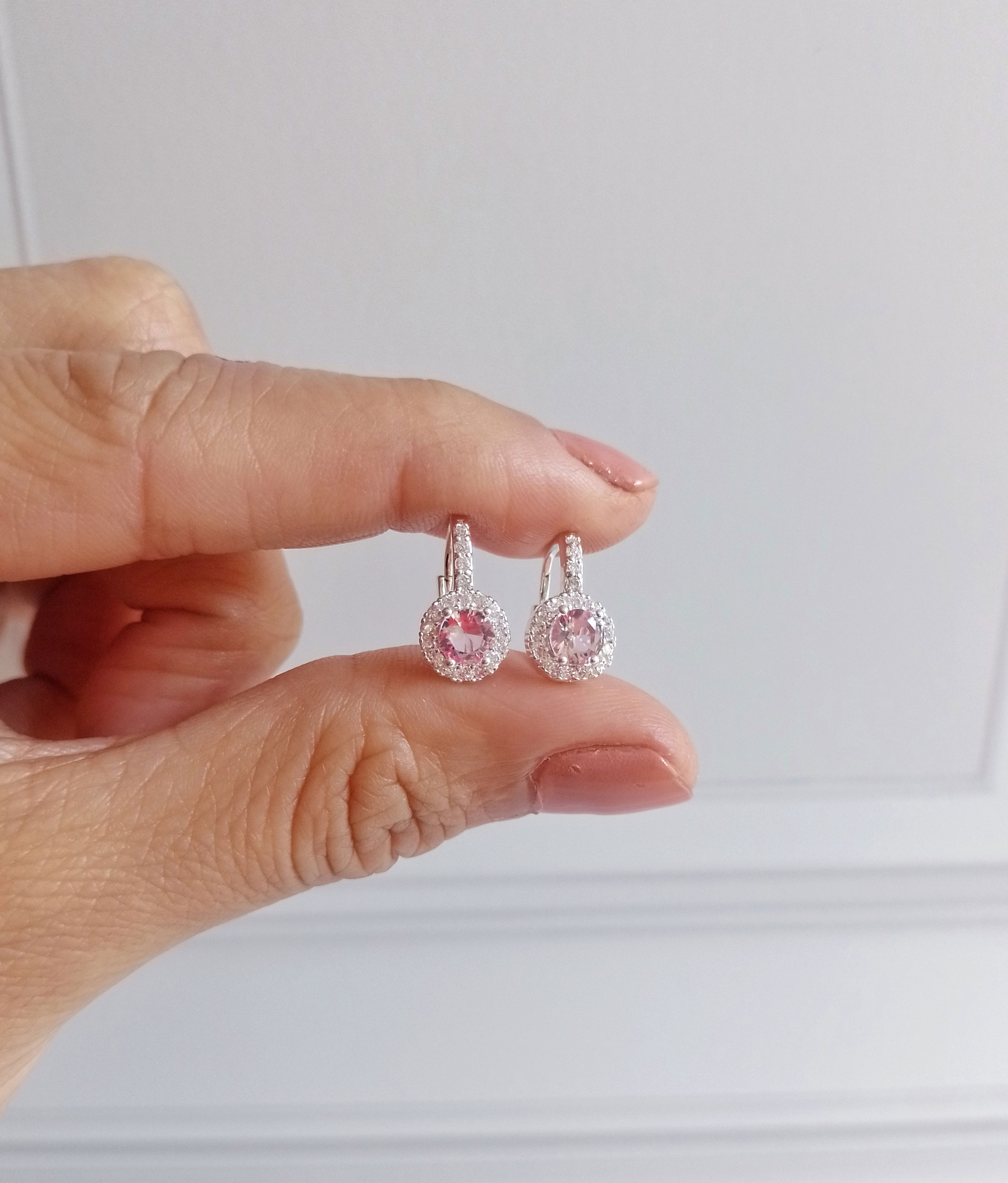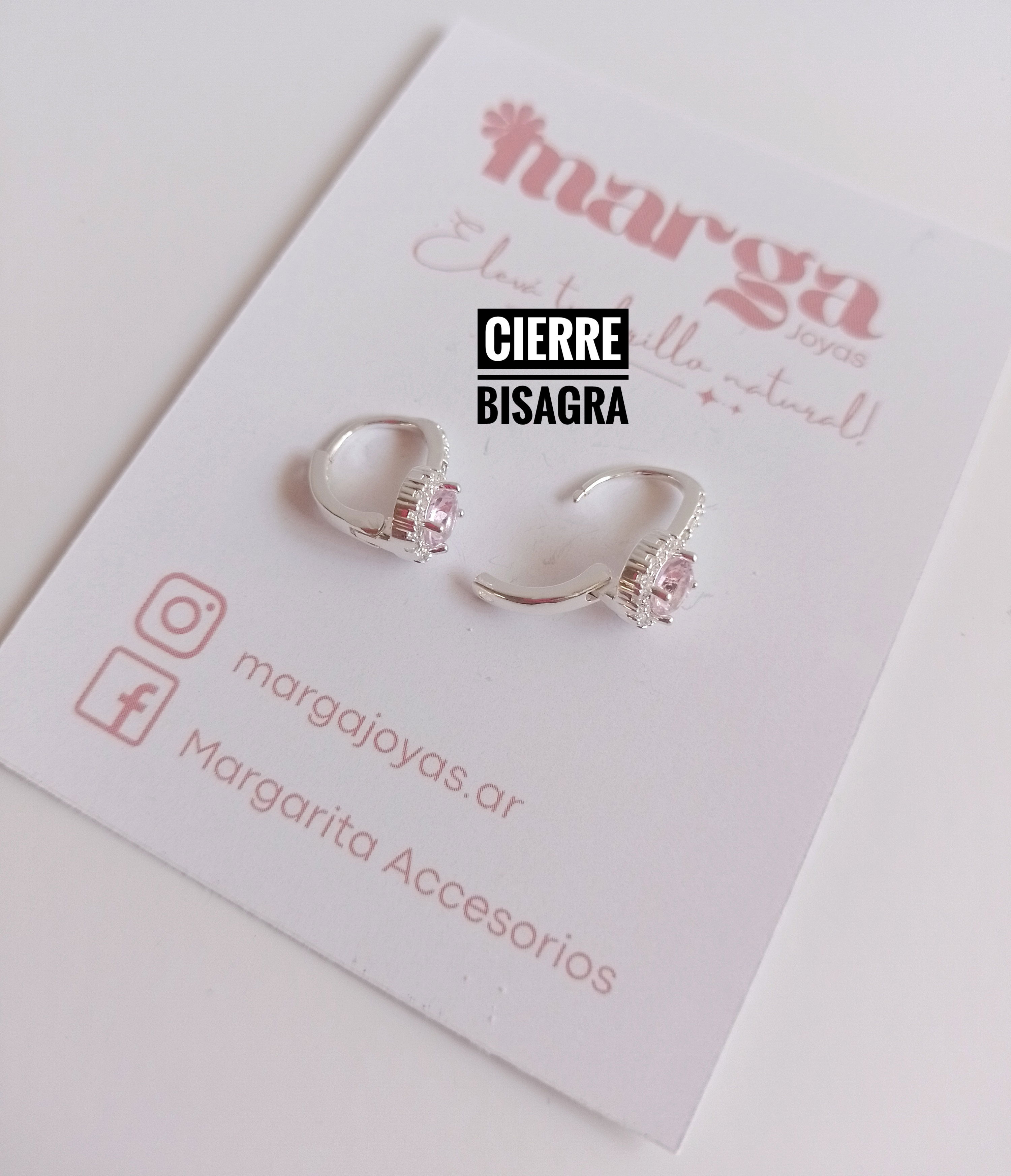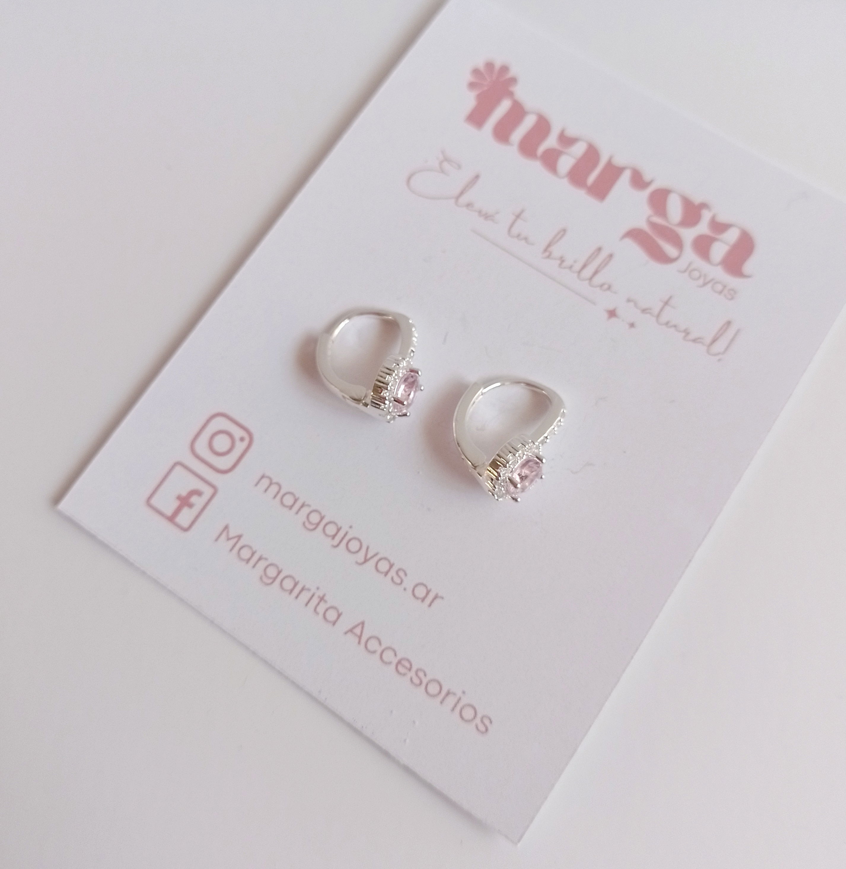 •Aros argollas laminadas en plata 925 con cubic color rosa claro y microcubics color cristal