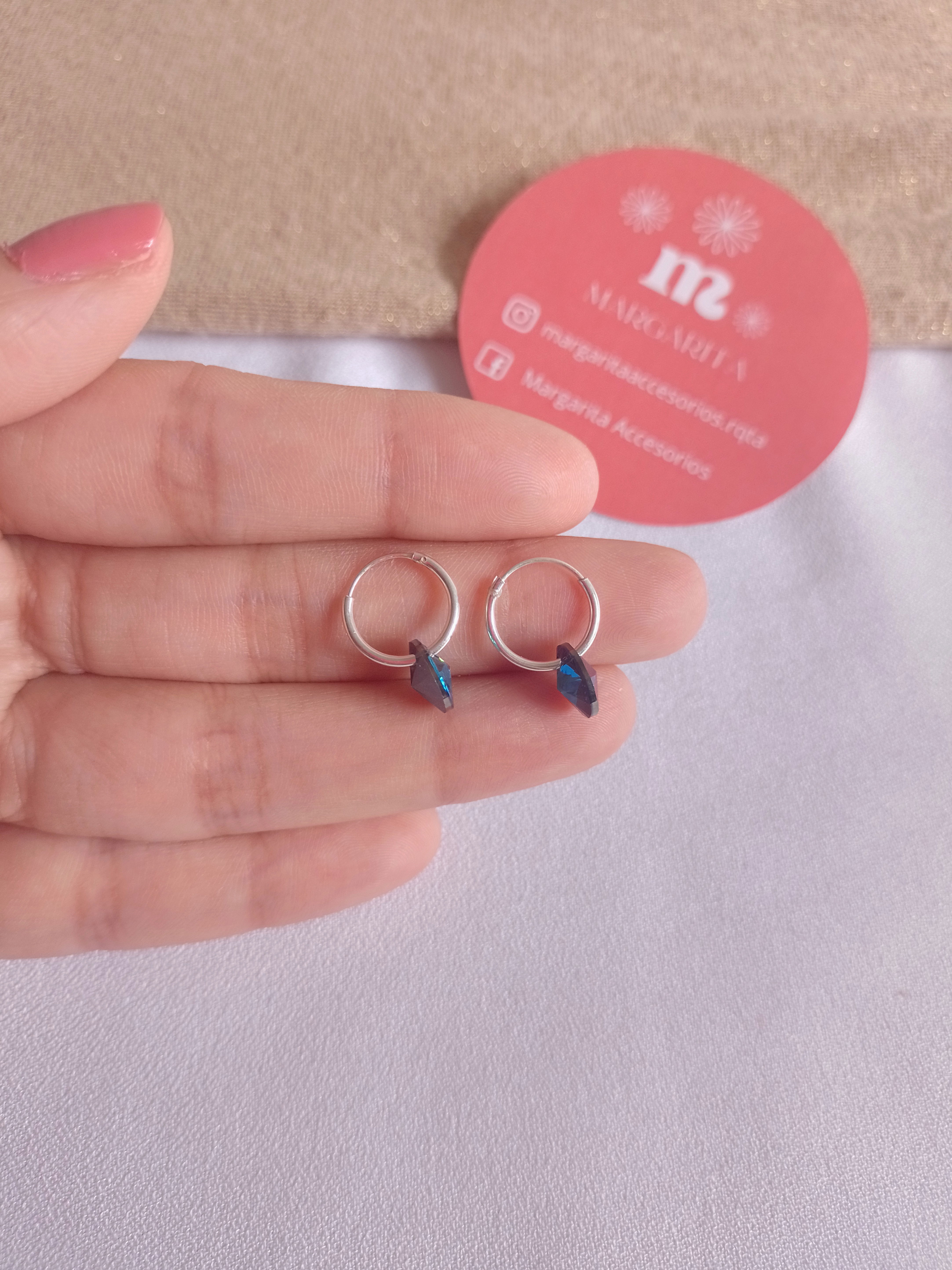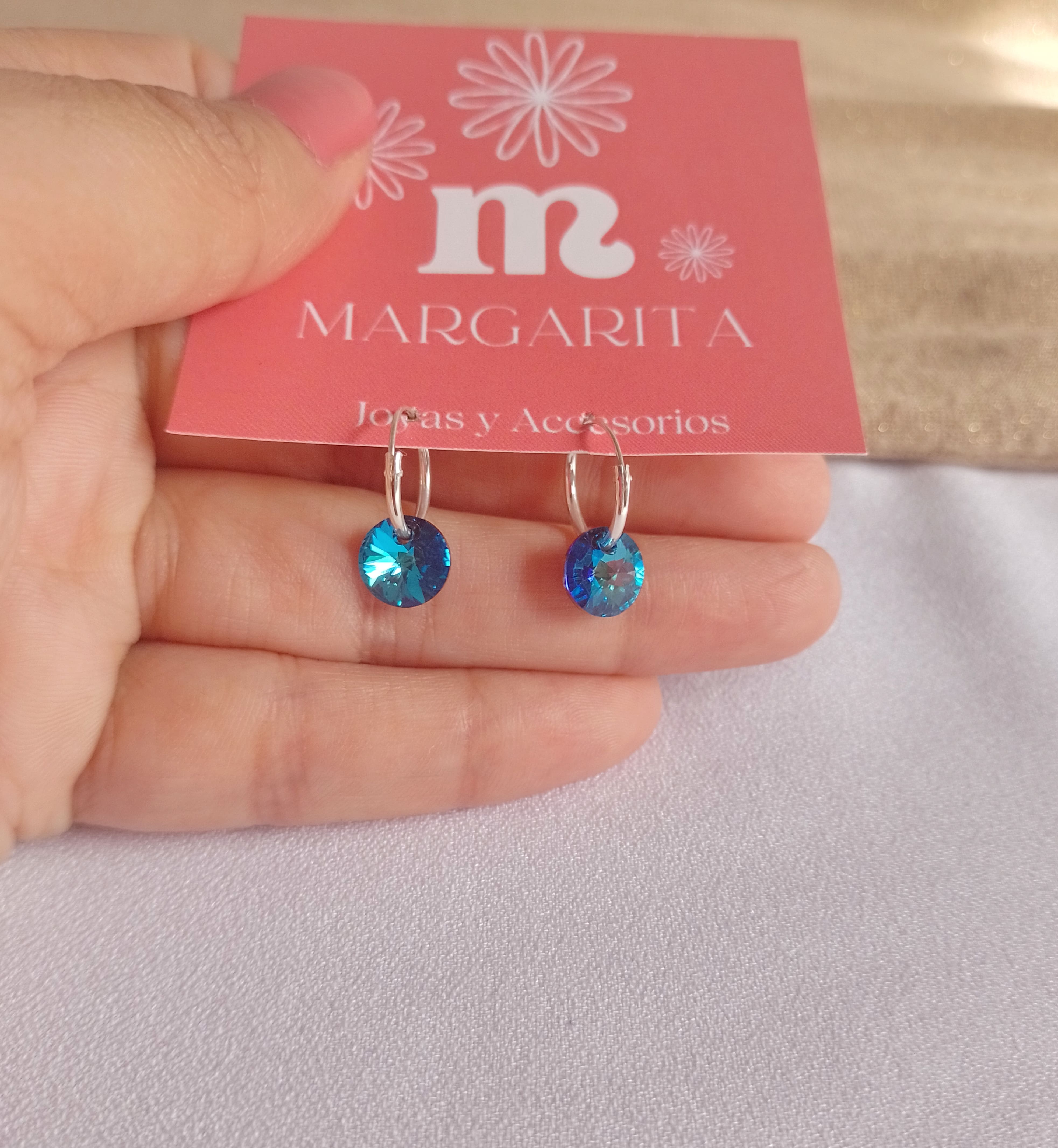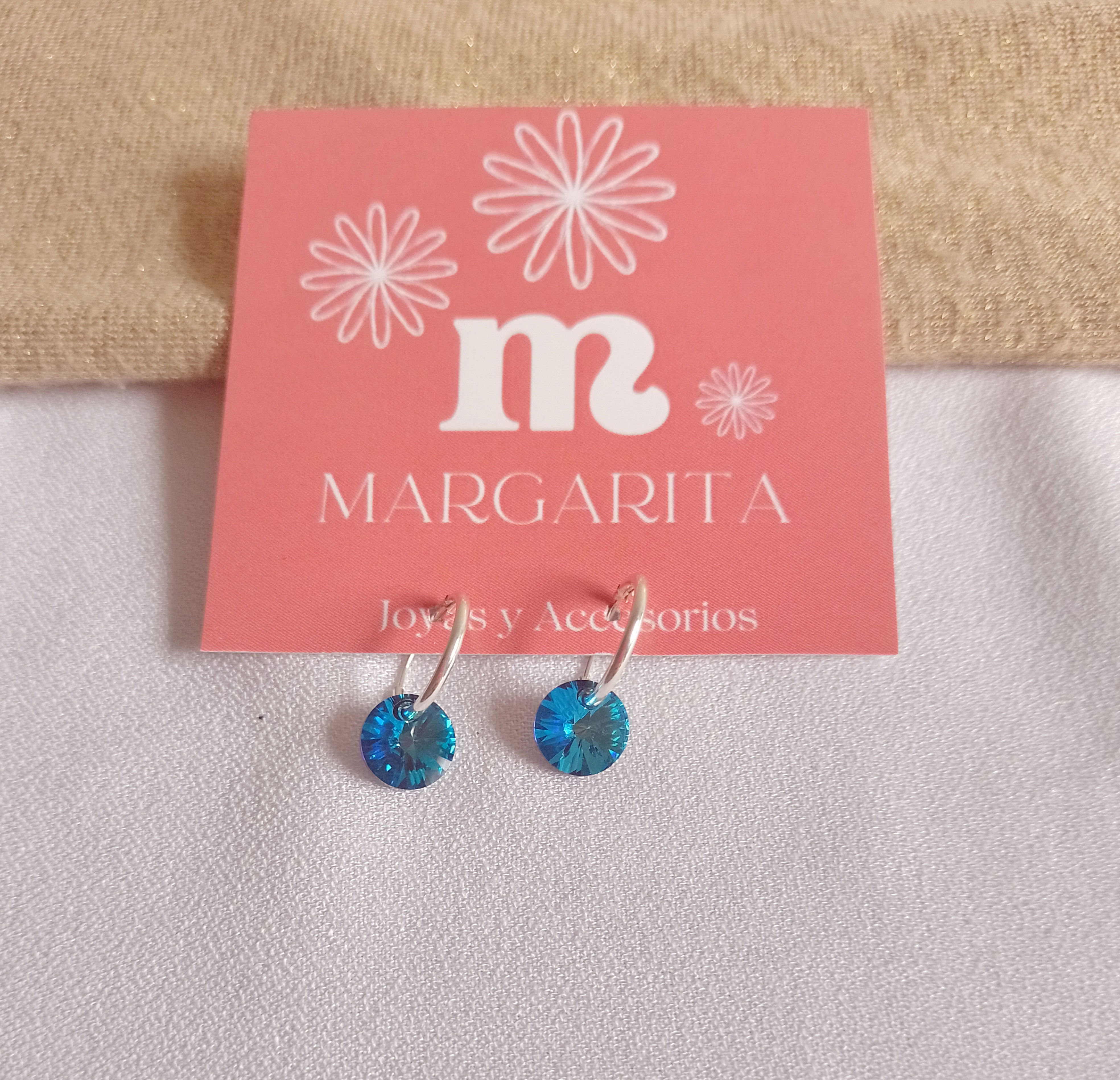 •Argollitas de plata con Cristal Swarovski Rivoli (tono de cristal: Bermuda Blue)