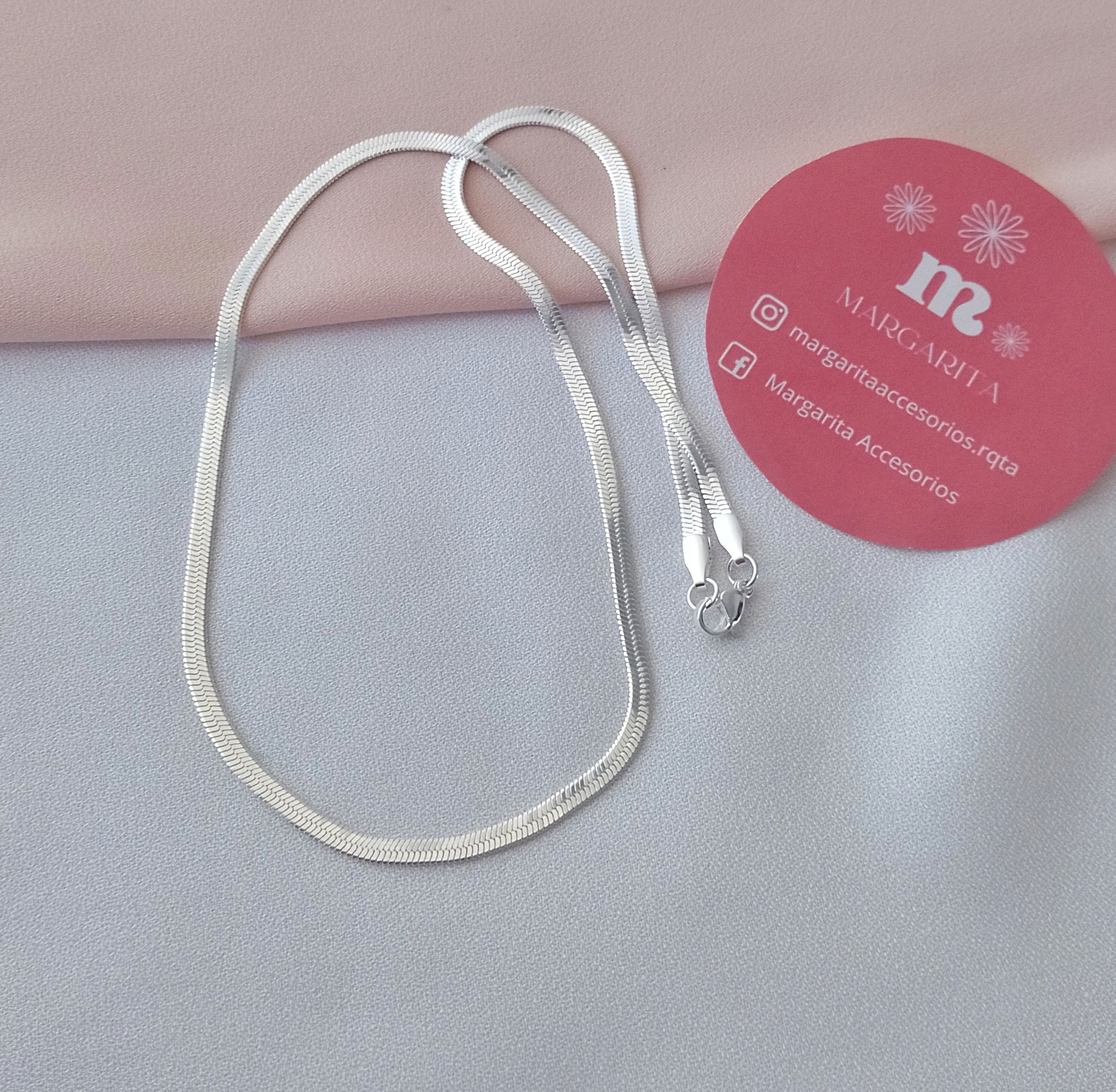 •Cadena plana de 3 mm de espesor y 45 cm de largo. Largo fijo, no regulable.