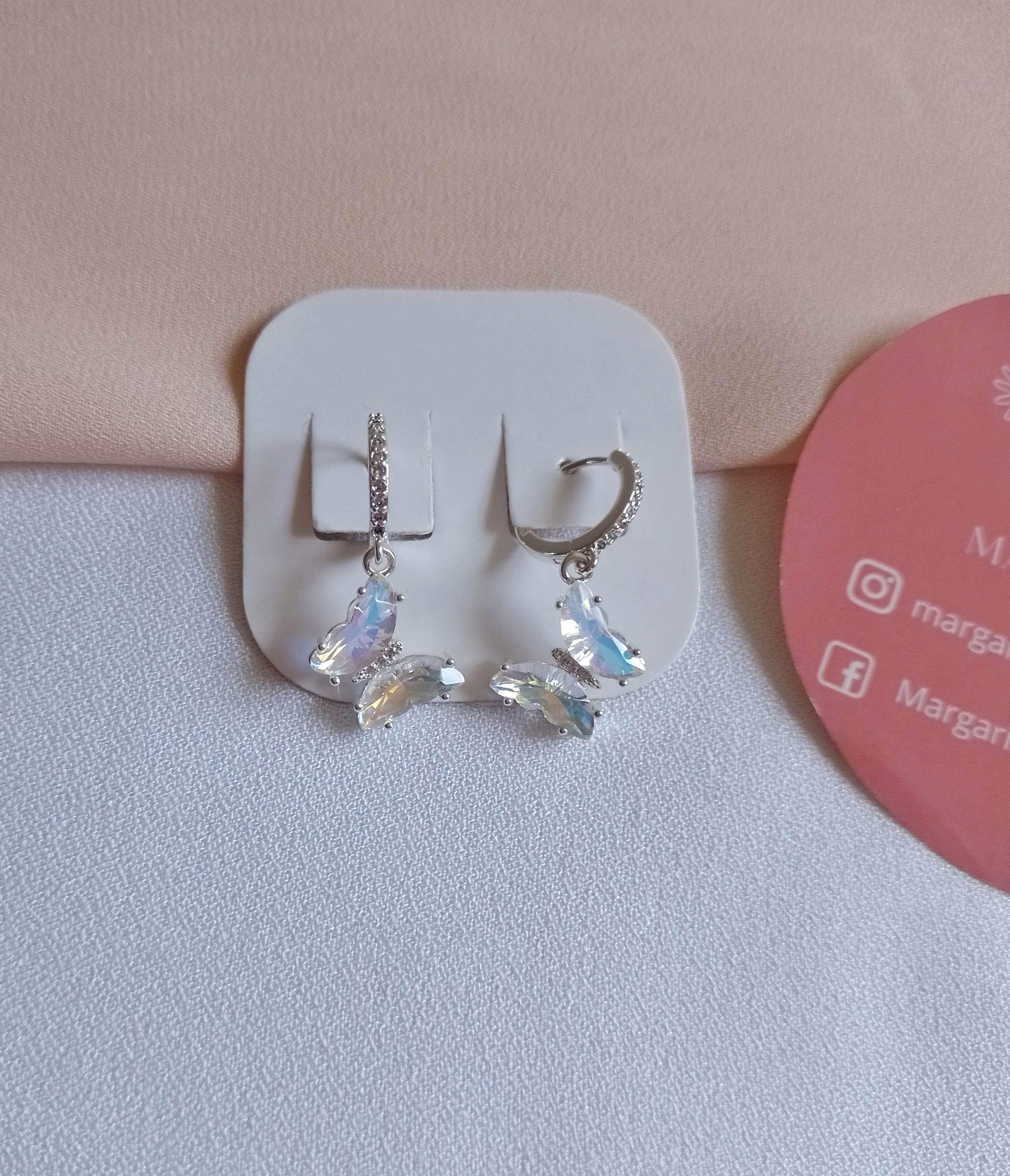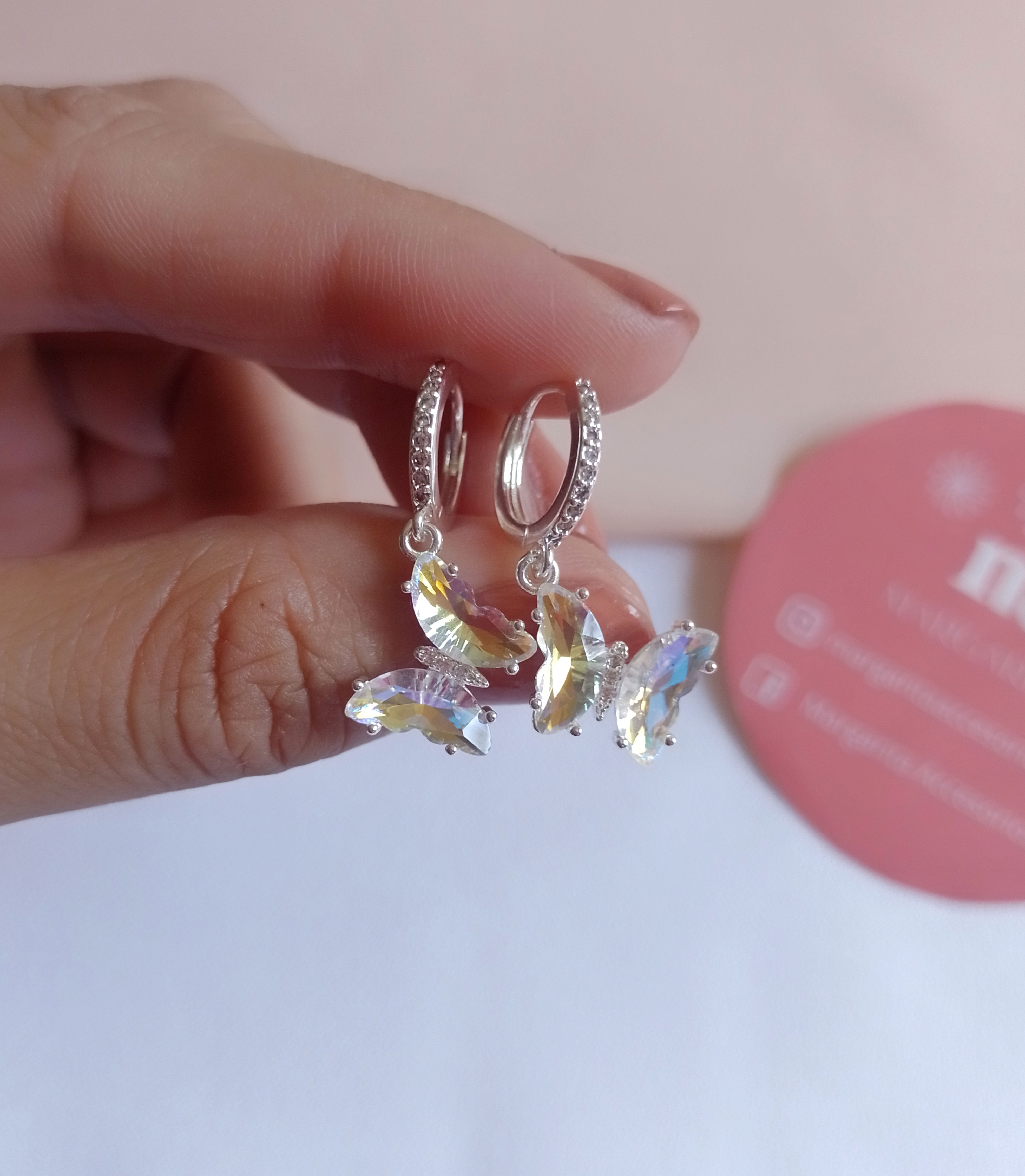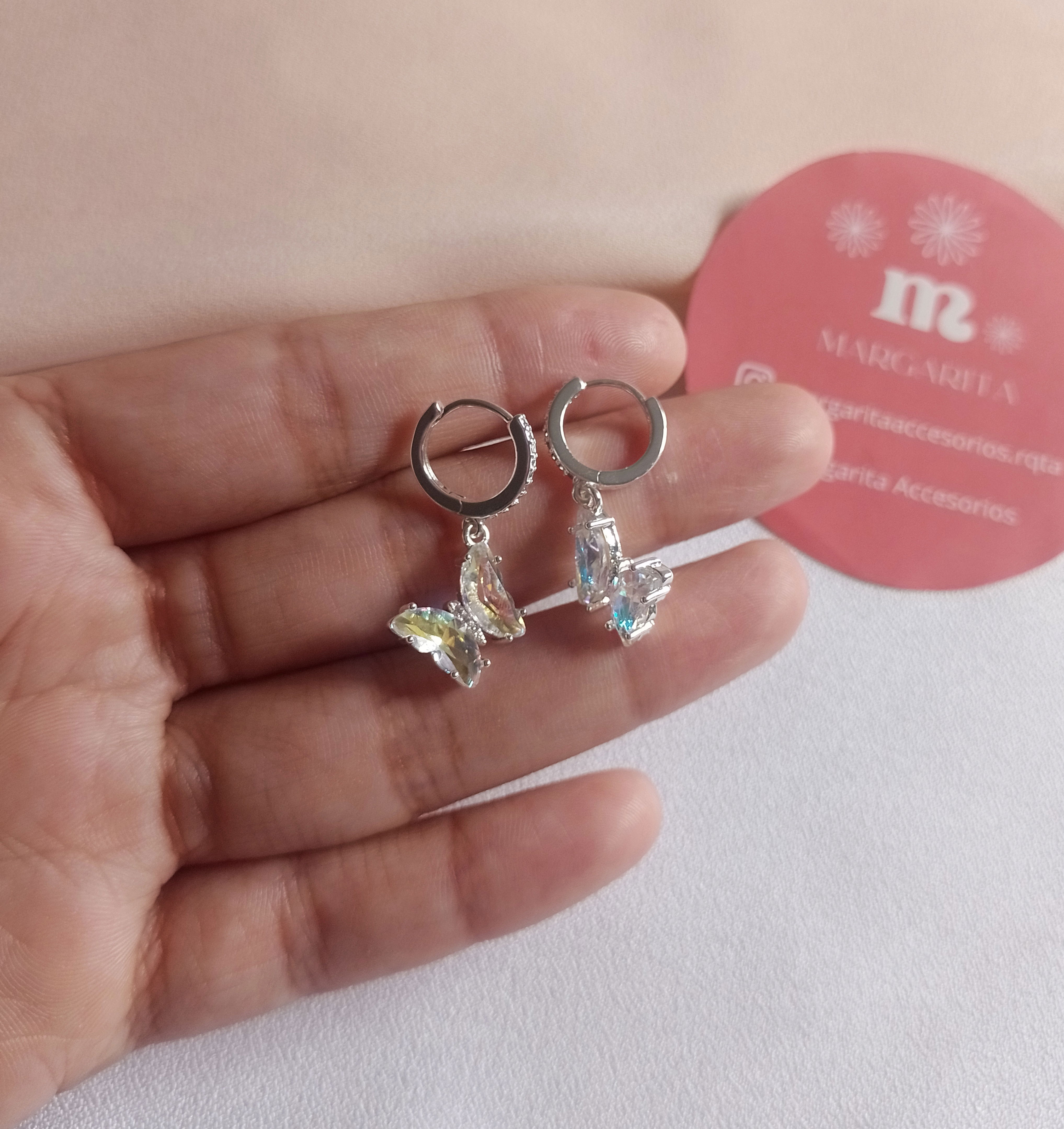 •Argollitas con microcubics en el frente y con dije mariposa cristal boreal