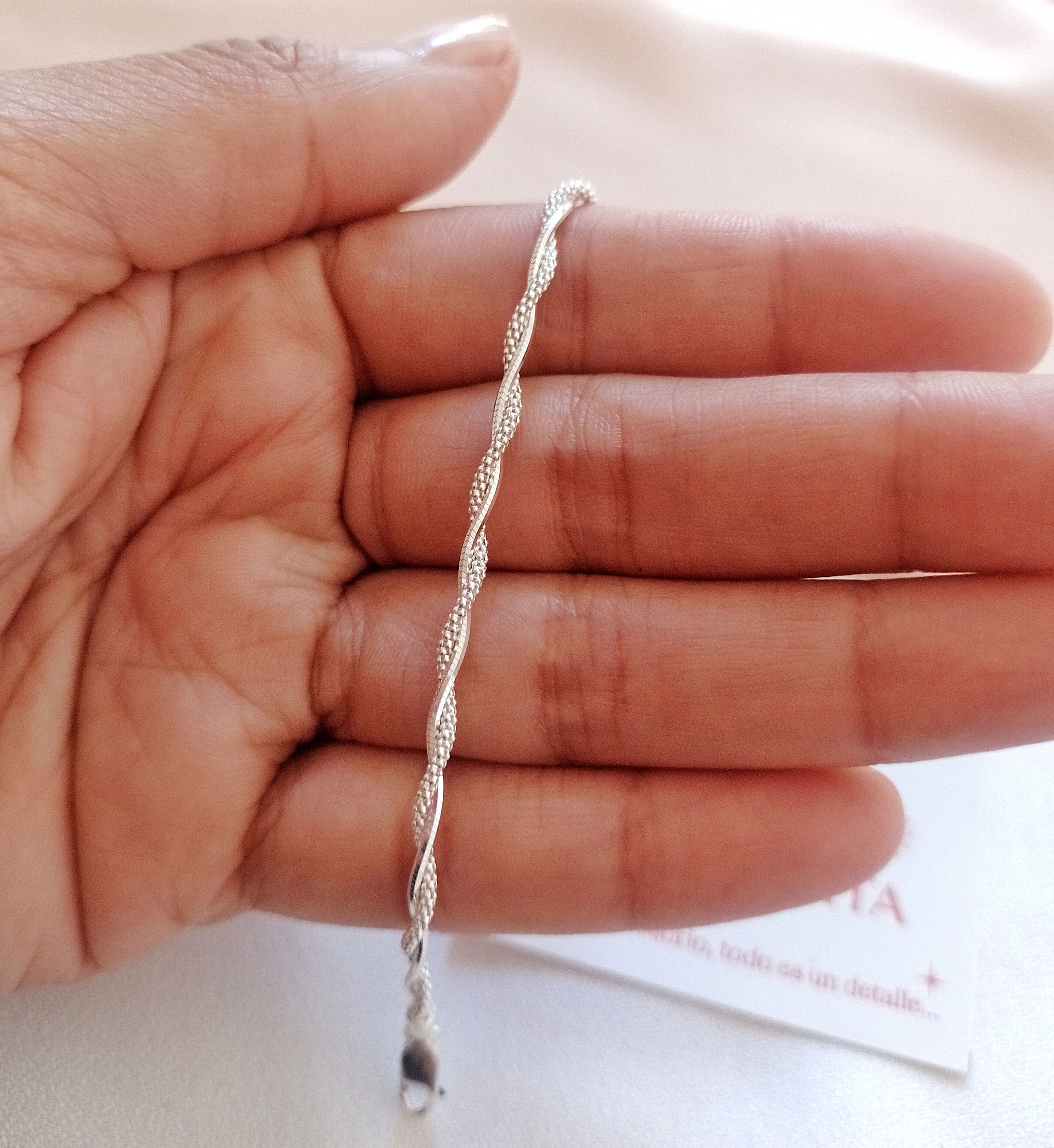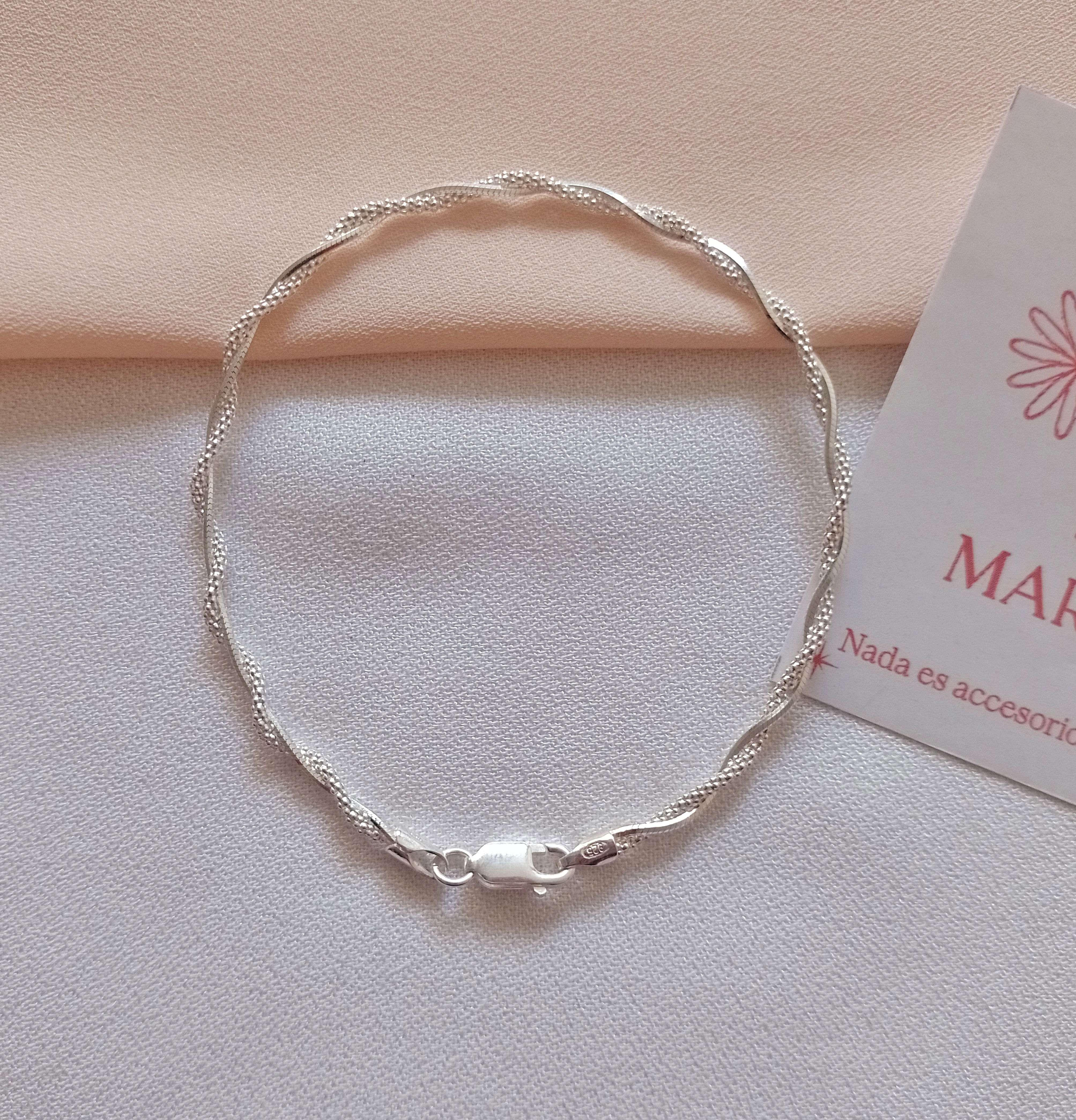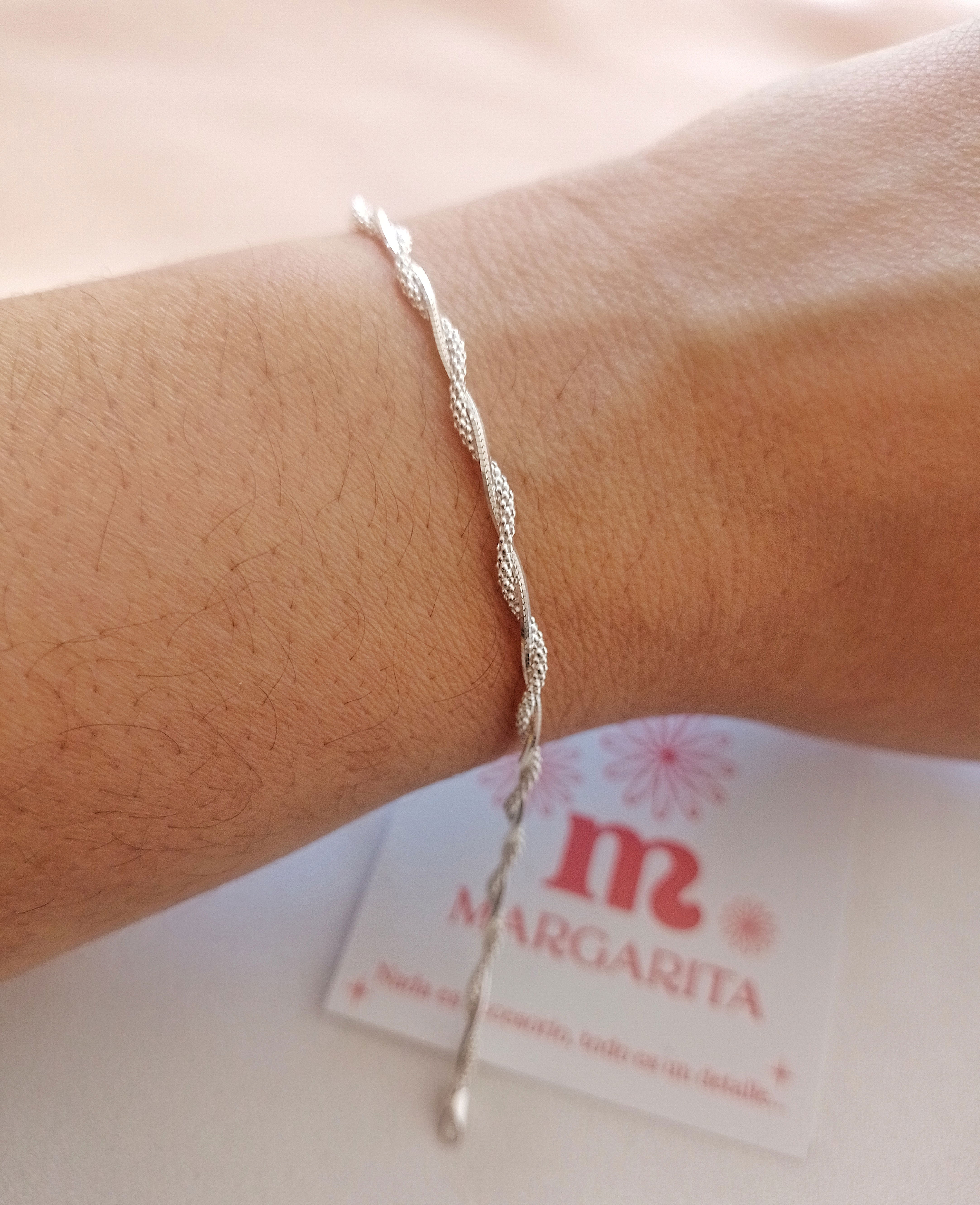 •Pulsera Doble cadena entrelazada, cadena clapton y cadena canasta.