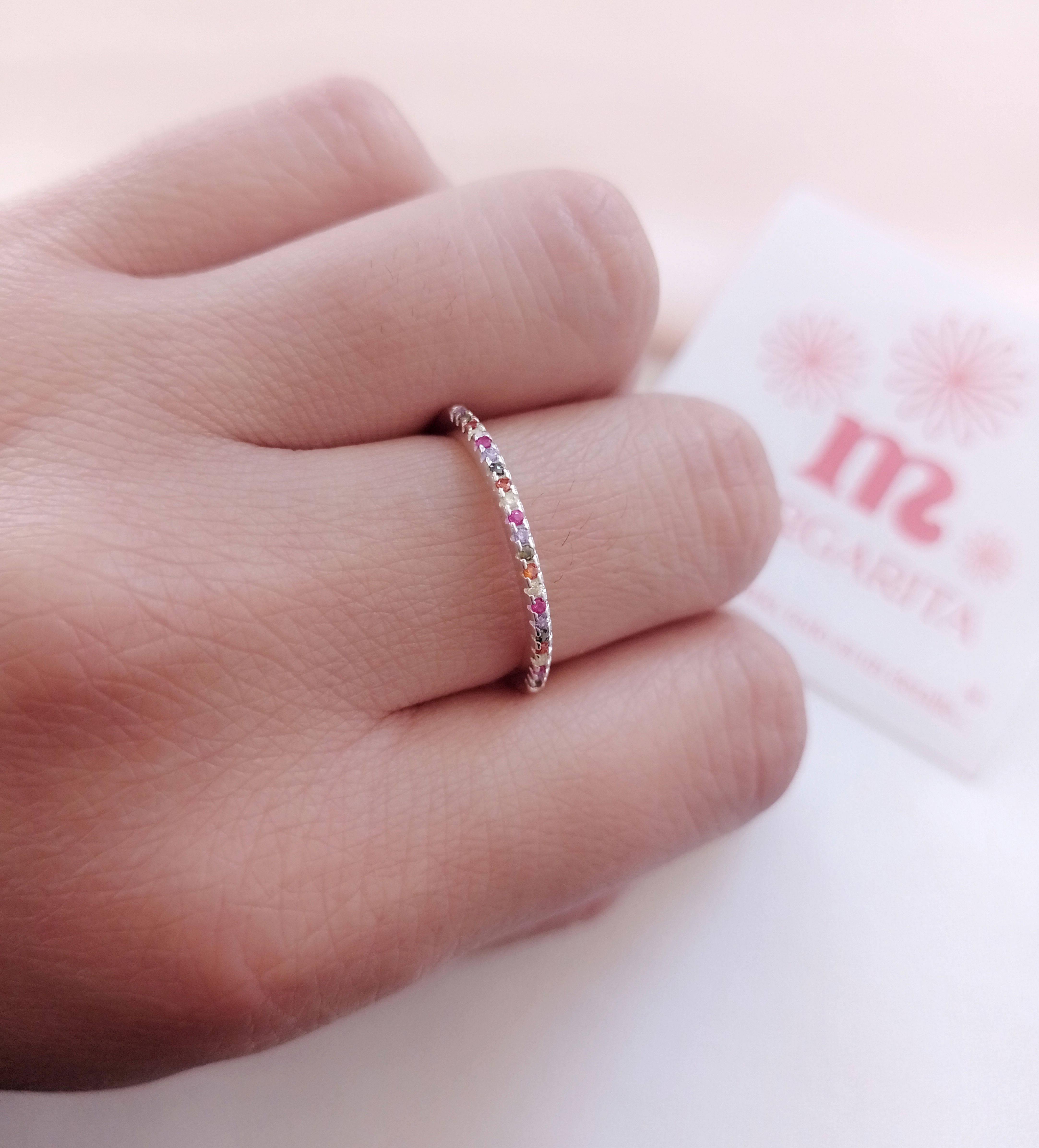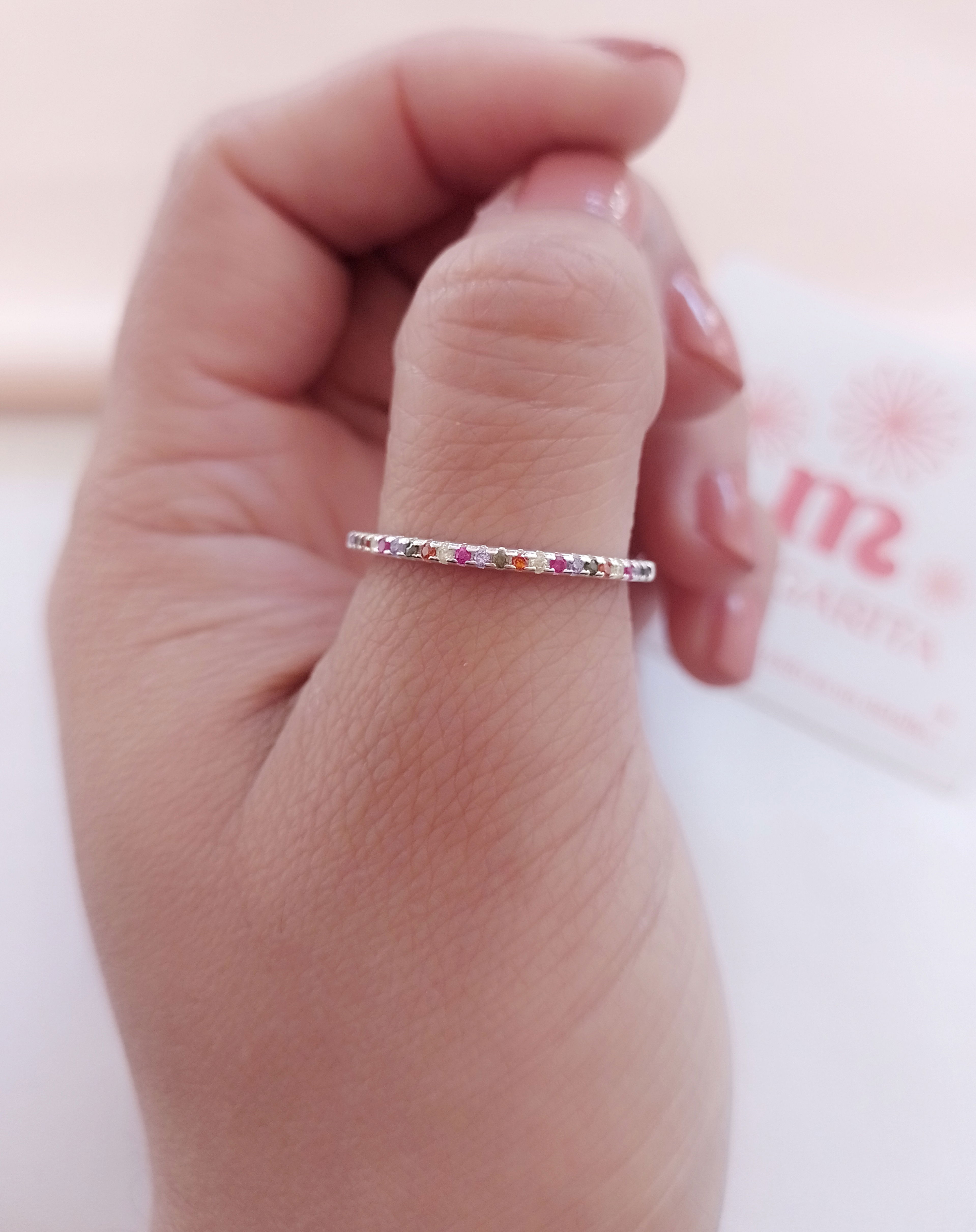 •Anillo Fino con Microcubics Multicolor