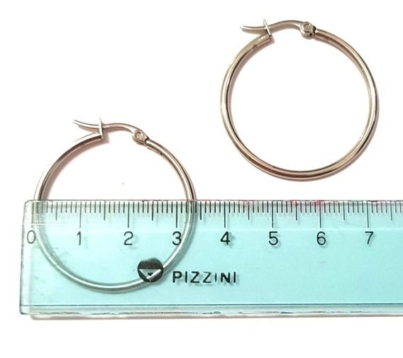 Estos aros por ejemplo tienen 3,5 cm (o 3,4 cm si se quiere ser mas exacto) de diámetro, que es lo mismo que decir 35 mm (milímetros) aclaro esto porque hay personas que se maneja en milímetros para las medidas y otros en centímetros, la única diferencia con la medida en centímetros o milímetros es que en centímetros lleva la coma.